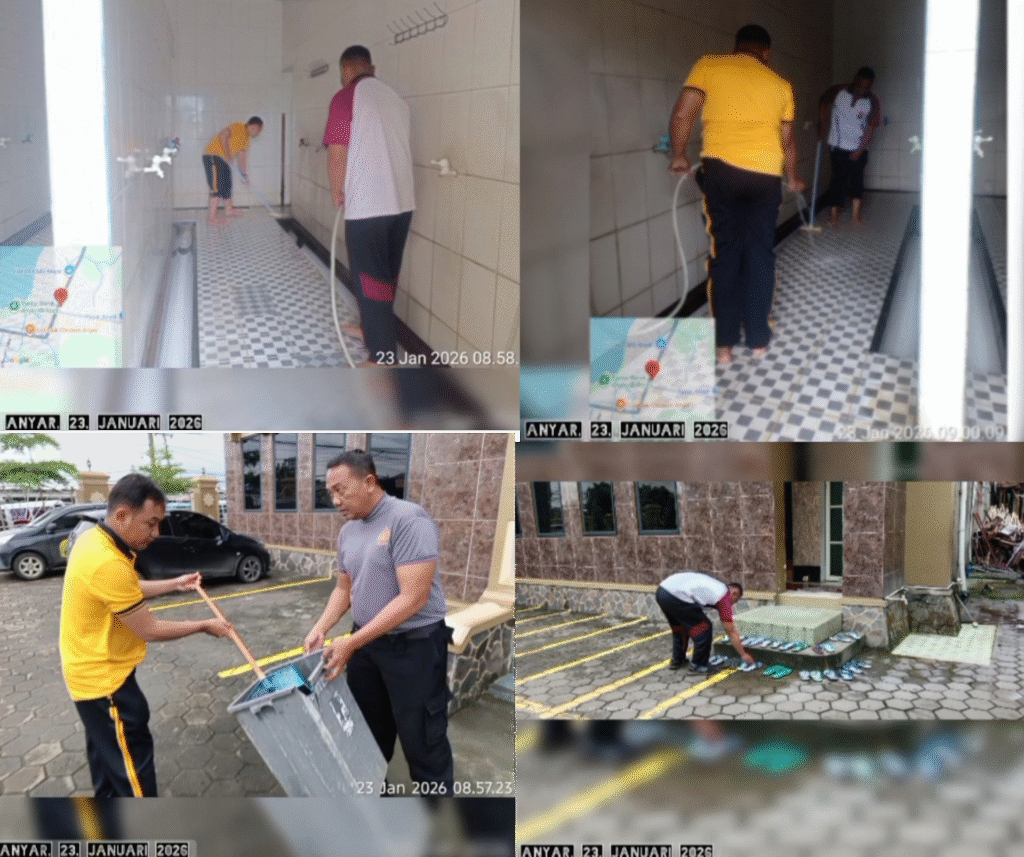 Kegiatan tersebut dipimpin langsung oleh Kapolsek Anyar IPTU H. Iwan Sofiyan, S.E., M.M., bersama personel Polsek Anyar, sebagai bentuk kepedulian Polri terhadap sarana ibadah dan masyarakat sekitar.
