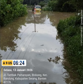 Serang – FaktaDataNews 》Intensitas hujan tinggi yang mengguyur wilayah Kabupaten Serang dalam beberapa hari terakhir mengakibatkan banjir di sejumlah titik ruas jalan nasional Merak–Jakarta. Salah satu titik terparah terjadi di terowongan Tambak, Kecamatan Kibin, pada Senin (13/01/2026).