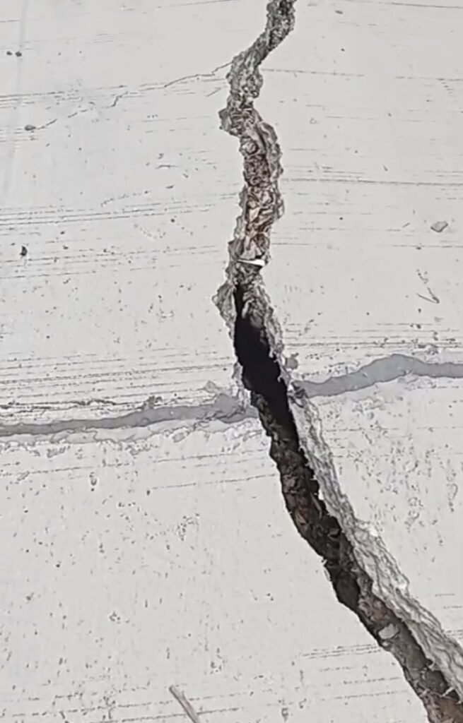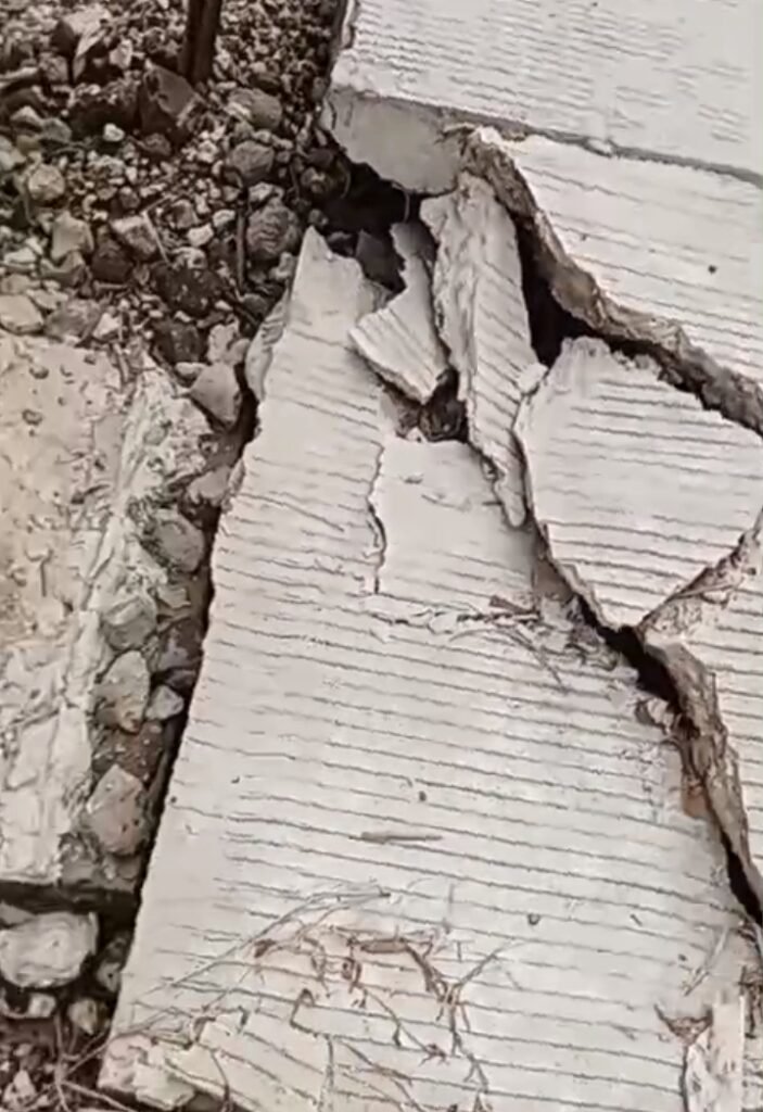 Namun fakta di lapangan berbanding terbalik. Beton jalan tampak pecah dan amblas di sejumlah titik. Bahkan terlihat struktur dasar yang diduga tidak memenuhi standar teknis.