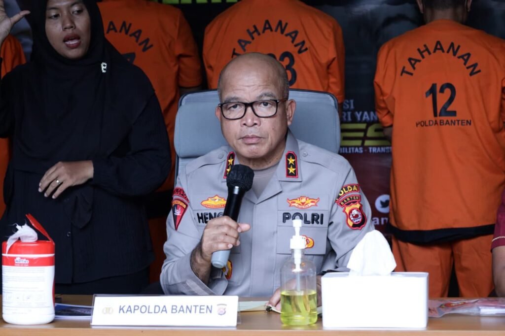 Serang / FaktaData News / Polda Banten menggelar konferensi pers terkait pengungkapan kasus pertambangan ilegal yang ditemukan di sejumlah wilayah Banten periode Oktober – November 2025.