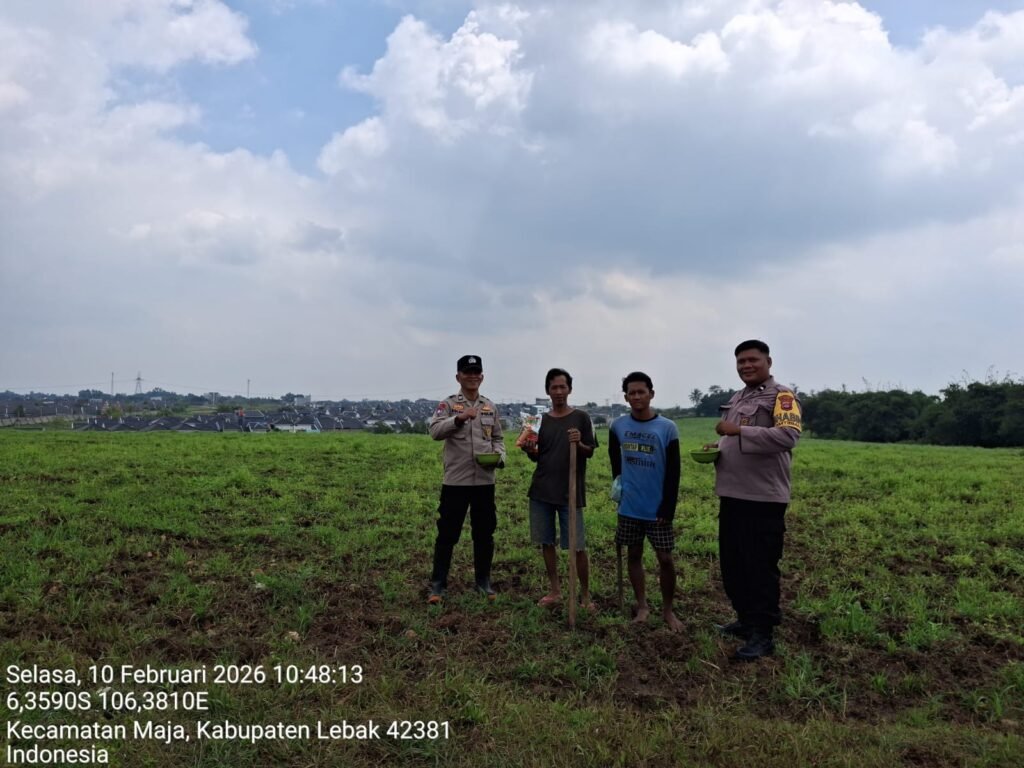 Lebak — FaktaDataNews 》Dalam rangka melaksanakan perintah pimpinan guna mendukung program prioritas Kapolri Presisi (Prediktif, Responsibilitas, Transparansi, dan Berkeadilan) serta Asta Cita Presiden Republik Indonesia, Kapolsek Maja Polres Lebak AKP Iwan Sofiyan, S.E., M.M., bersama Pamit Binmas dan Bhabinkamtibmas Polsek Maja melaksanakan kegiatan penanaman jagung hibrida bersama Gapoktan Bina Karya di lahan seluas 12 hektare yang berlokasi di Desa Curug Badak, Kecamatan Maja, Kabupaten Lebak, Selasa (10/02/2026).