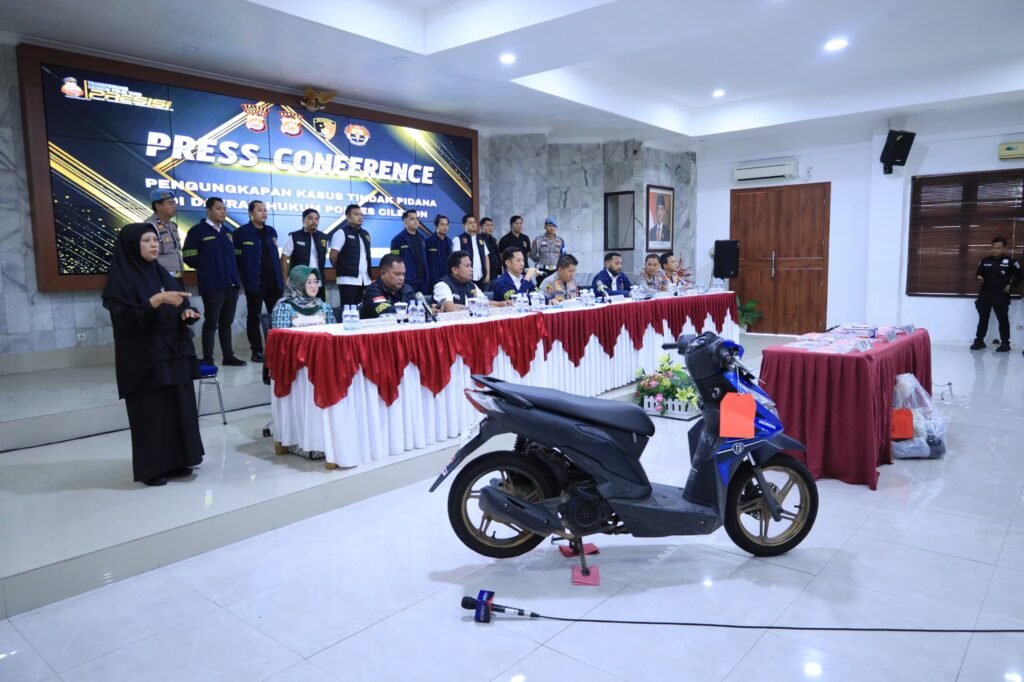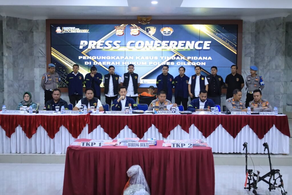 Press conference tersebut disampaikan oleh Ditreskrimum Polda Banten Kombes Pol Dian Setyawan didampingi Kapolres Cilegon AKBP Dr. Martua Raja Taripar Laut Silitonga, Plh.
