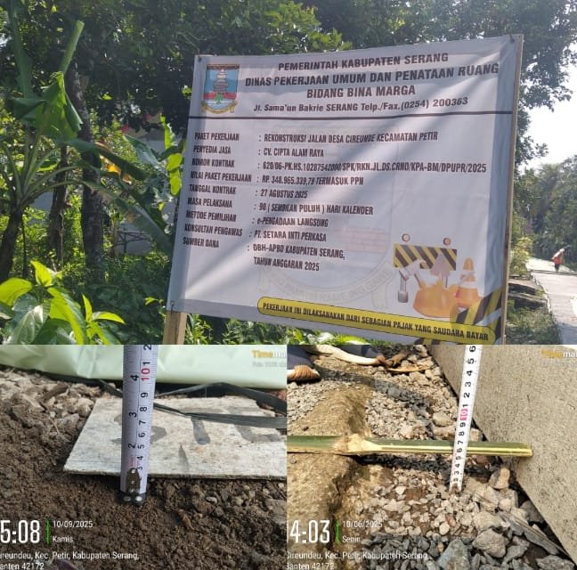 Lemahnya Pengawasan Dinas PUPR Kab Serang, Dugaan Penyimpangan Spesifikasi dan Kualitas Dalam Proyek Rekonstruksi Jalan Desa Cireunde, Kecamatan Petir