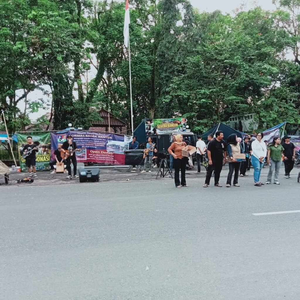 Sementara itu, hari Minggu, 18 Januari 2026, massa aksi menggelar “Ngamen Bareng” bersama para penyanyi jalanan di depan Kantor Bupati Lebak.