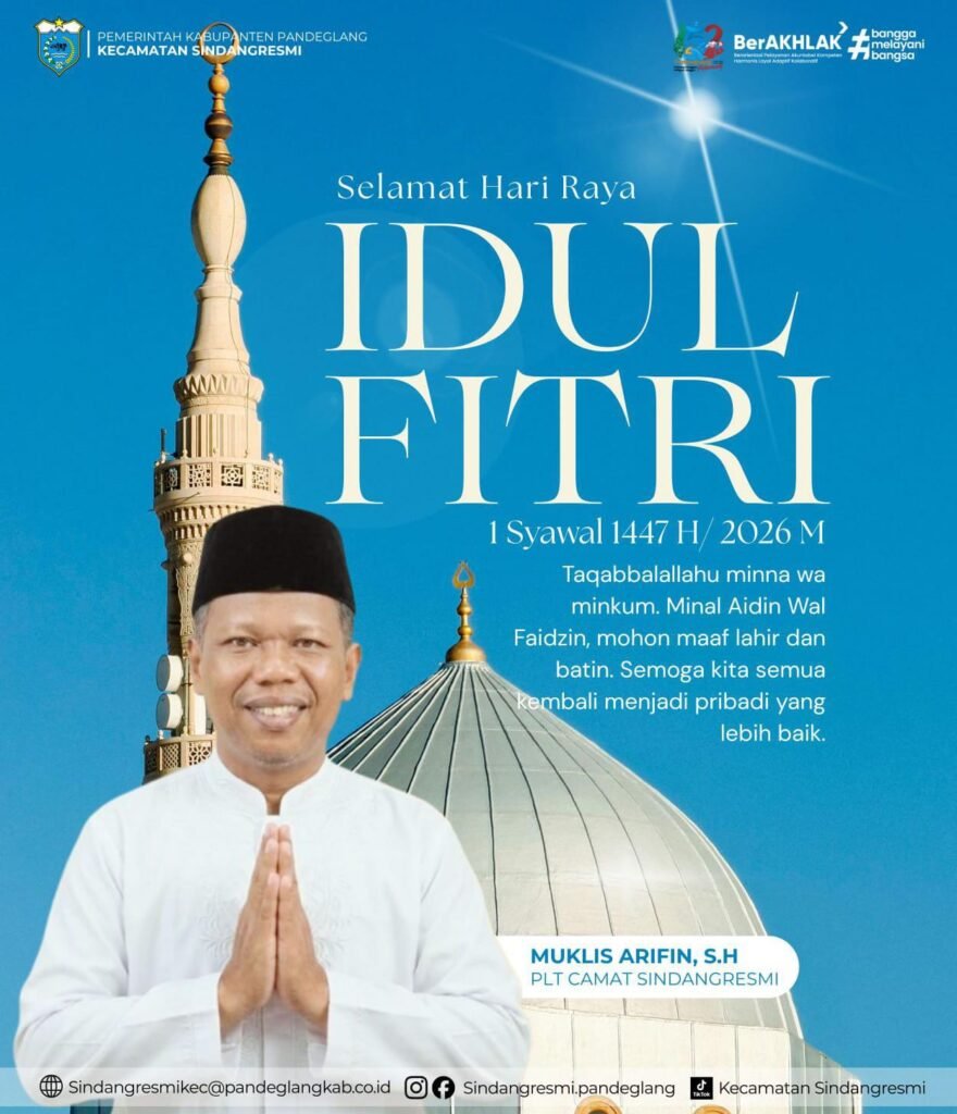 Fakta Data News.com |Pandeglang,Banten.Dalam suasana penuh khidmat menyambut Hari Raya Idul Fitri 1447 Hijriah, Pelaksana Tugas (PLT) Camat Sindangresmi, Muklis Arifin, S.H, menyampaikan ucapan selamat sekaligus pesan kebersamaan kepada seluruh masyarakat Kecamatan Sindangresmi.