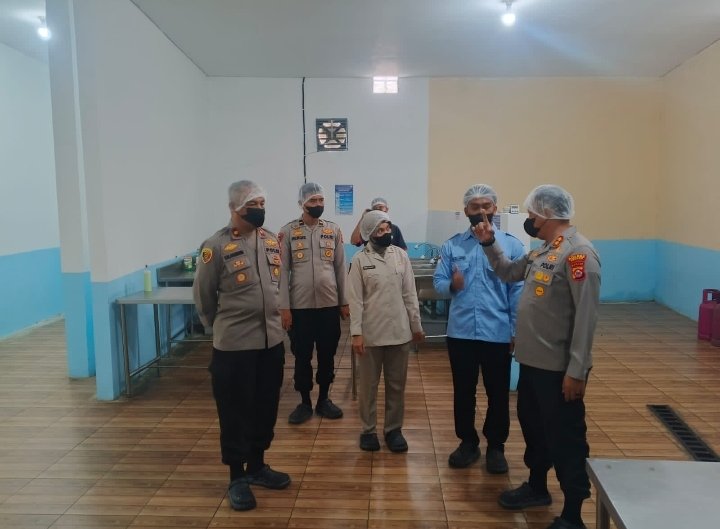 Dalam kegiatan tersebut, Kapolres meninjau secara menyeluruh kondisi dapur, mulai dari kebersihan lingkungan, keamanan bahan pangan, hingga penerapan standar operasional prosedur (SOP) dalam pengolahan makanan.