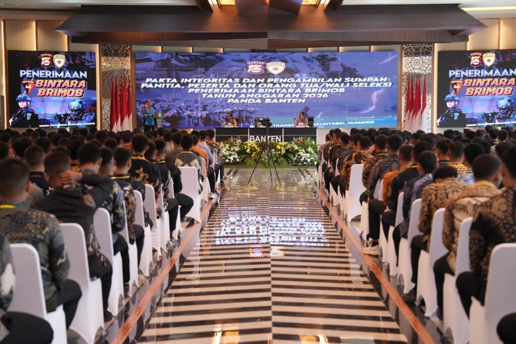 Polda Banten / FaktaData News / Proses Rekrutmen Bintara Brimob Polri Tahun Anggaran 2026 resmi dimulai dengan Penandatanganan Fakta Integritas oleh PANDA Banten, Kegiatan ini dipimpin langsung oleh Kapolda Banten Irjen Pol. Hengky S.I.K., M.H., dan diikuti oleh 320 peserta dari seluruh Polsek di wilayah hukum Polda Banten.