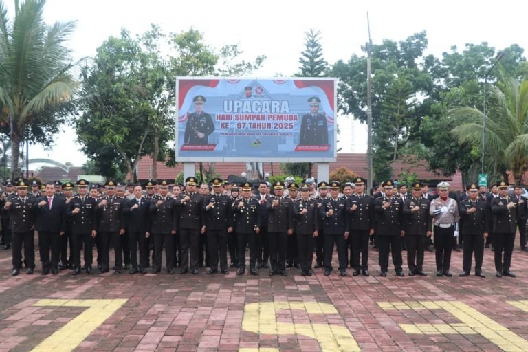Lebak / Fakta Data News / Polres Lebak Polda Banten menggelar upacara peringatan Hari Sumpah Pemuda ke-97 tahun 2025 di Lapangan Mapolres Lebak, Selasa (28/10/2025).