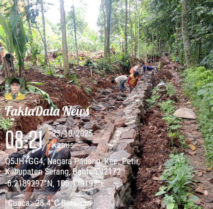 Dugaan pelanggaran Keselamatan dan Kesehatan Kerja (K3) di lapangan mencuat setelah tim FaktaData News menemukan pekerja tanpa Alat Pelindung Diri (APD) saat melakukan pekerjaan berat di saluran irigasi, di Kampung Tapos, Desa Nagara Padang, Kecamatan Petir, Kabupaten Serang, Kamis (23/10/2025).