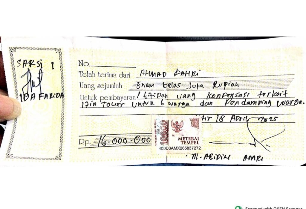 Menurut laporan resmi polisi pada tanggal 10 Oktober 2025, pada tanggal 18 April 2025 sore hari jam 16.00 WIB di Kampung Cilema, dana sebesar Rp16 juta yang sudah diterima oleh terlapor dengan kwitansi bermaterai telah gagal disalurkan ke warga terdampak. Laporan menyebutkan, penggelapan ini diduga dilakukan dengan modus menaikkan nilai klaim kompensasi hingga Rp26 juta, namun selisihnya sebesar Rp10 juta tak kunjung dibayarkan ke warga. Dugaan ini mengindikasikan transaksi hitam dan eksploitasi dana publik yang sangat merugikan masyarakat yang seharusnya menjadi penerima manfaat.