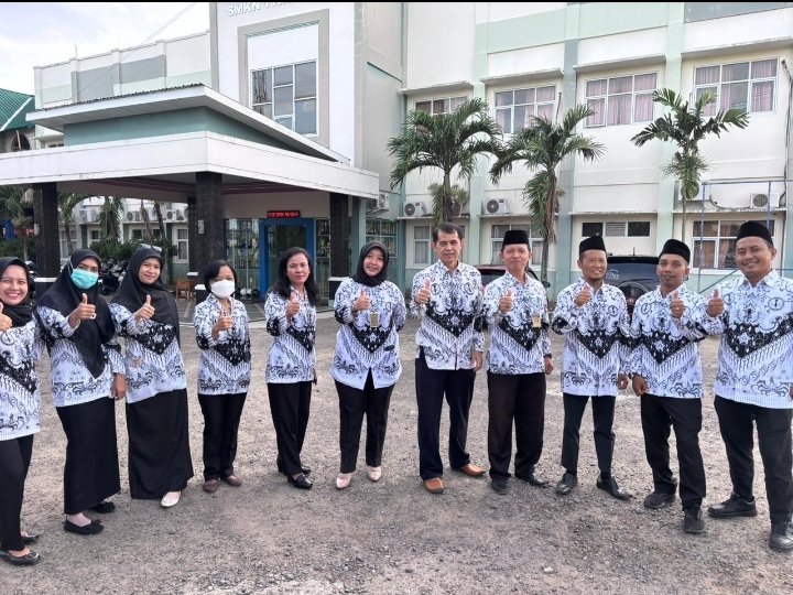 Dengan latar bangunan sekolah, para guru menunjukkan kebersamaan dan komitmen dalam memberikan layanan pendidikan terbaik bagi peserta didik.