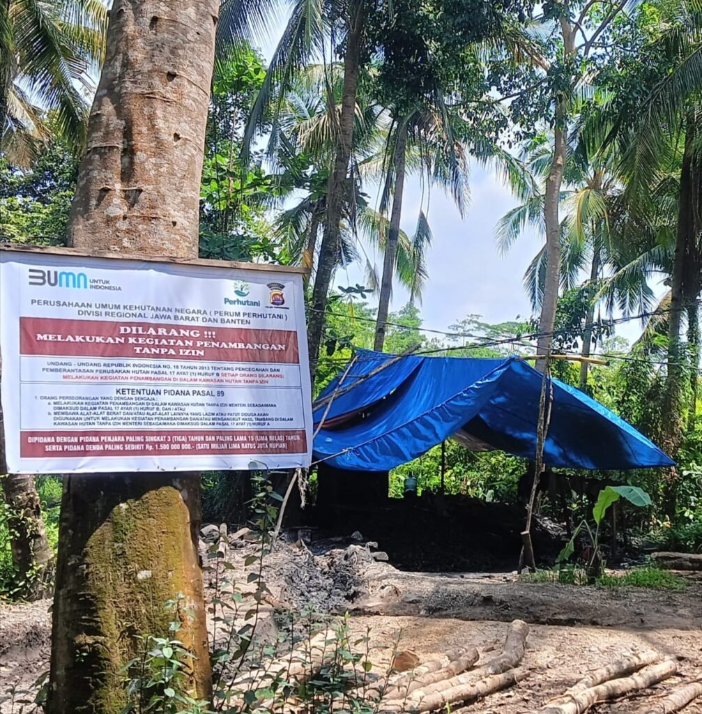 Ironisnya, meski lokasi tambang berada di kawasan hutan dan telah terpasang papan larangan penambangan tanpa izin dari Perhutani, aktivitas penambangan diduga tetap berlangsung.